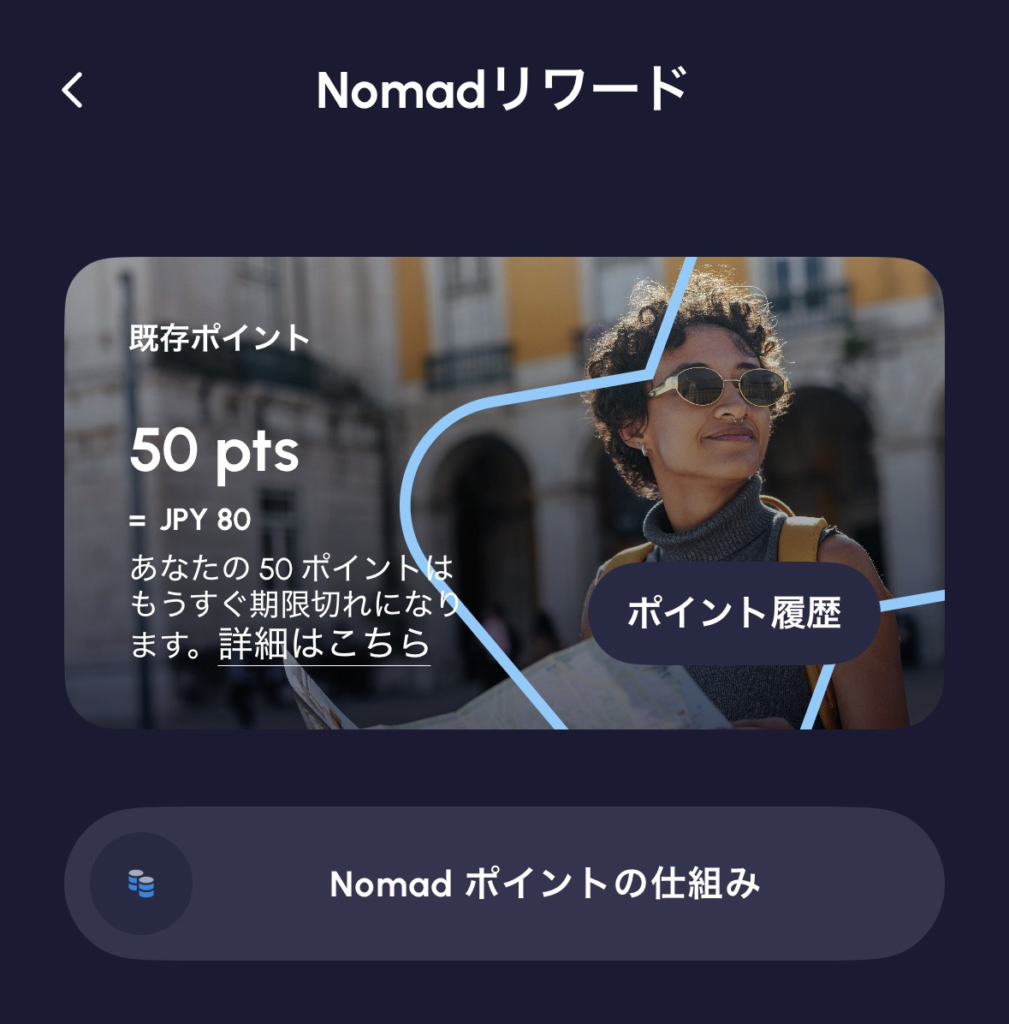 さらに、アプリから購入するとNomadポイントが貯まるんです。旅を重ねるたびにどんどんお得になっていくのが嬉しいですよね。