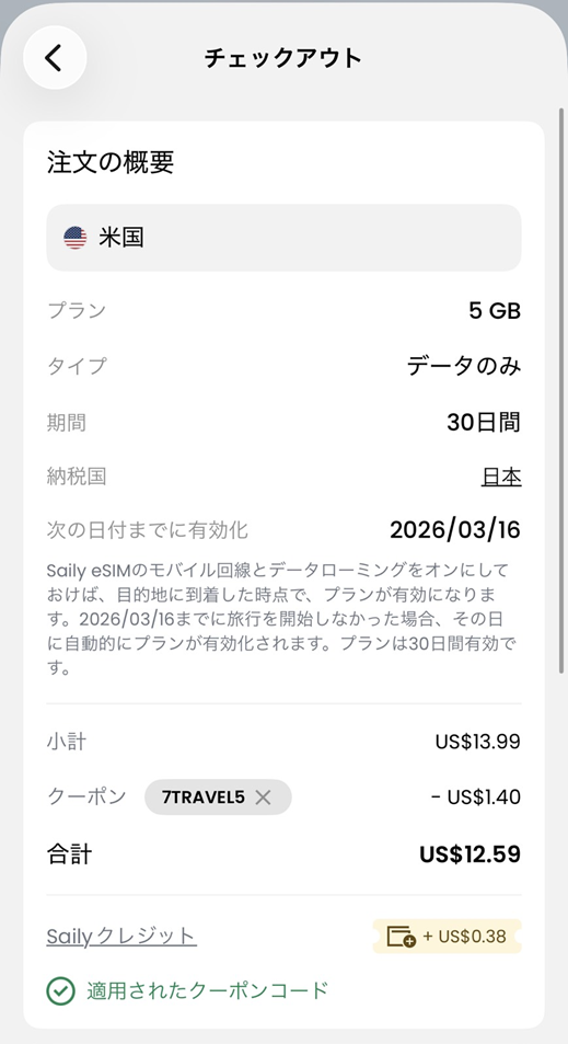 Sailyを今申し込む場合、海外eSIMの教科書限定のクーポンがオススメです!