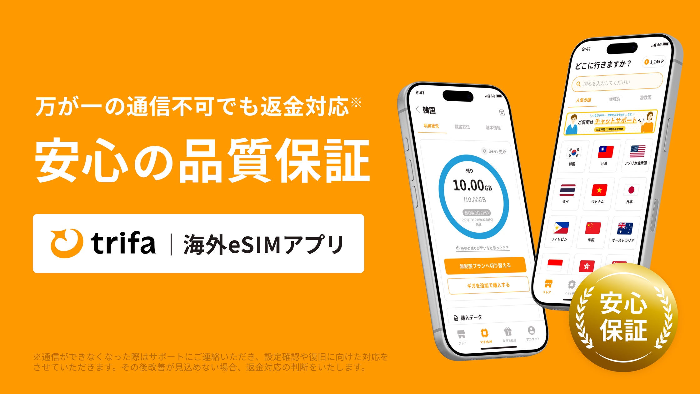 その点、トリファは日本人向けに作られているため、初めての海外eSIMでも心理的ハードルが低いのが魅力です。