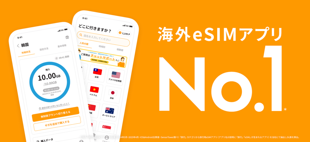 テレビCMや空港の広告でそんな言葉を目にして、私も海外用eSIMを使い始めました。