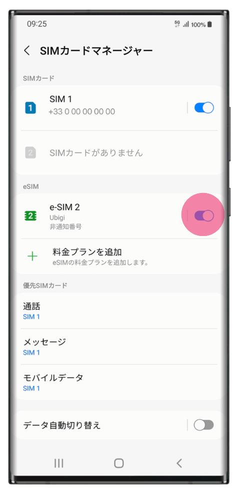機内モードをONにする前に、UbigiをデフォルトのデータSIMに設定しておくと、現地到着後すぐに使えて便利です。