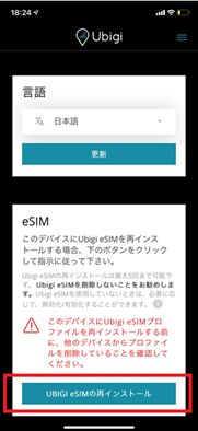 eSIM購入後にUbigiアプリからeSIMをインストールをタップするだけ!