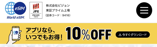 会社スマホからアプリのダウンロードが禁止されていたり、アプリを増やしたくないよって方はWorld eSIMでWEBからの購入をしたいという方はこちらのクーポンコードを利用して10%OFFで購入しましょう。